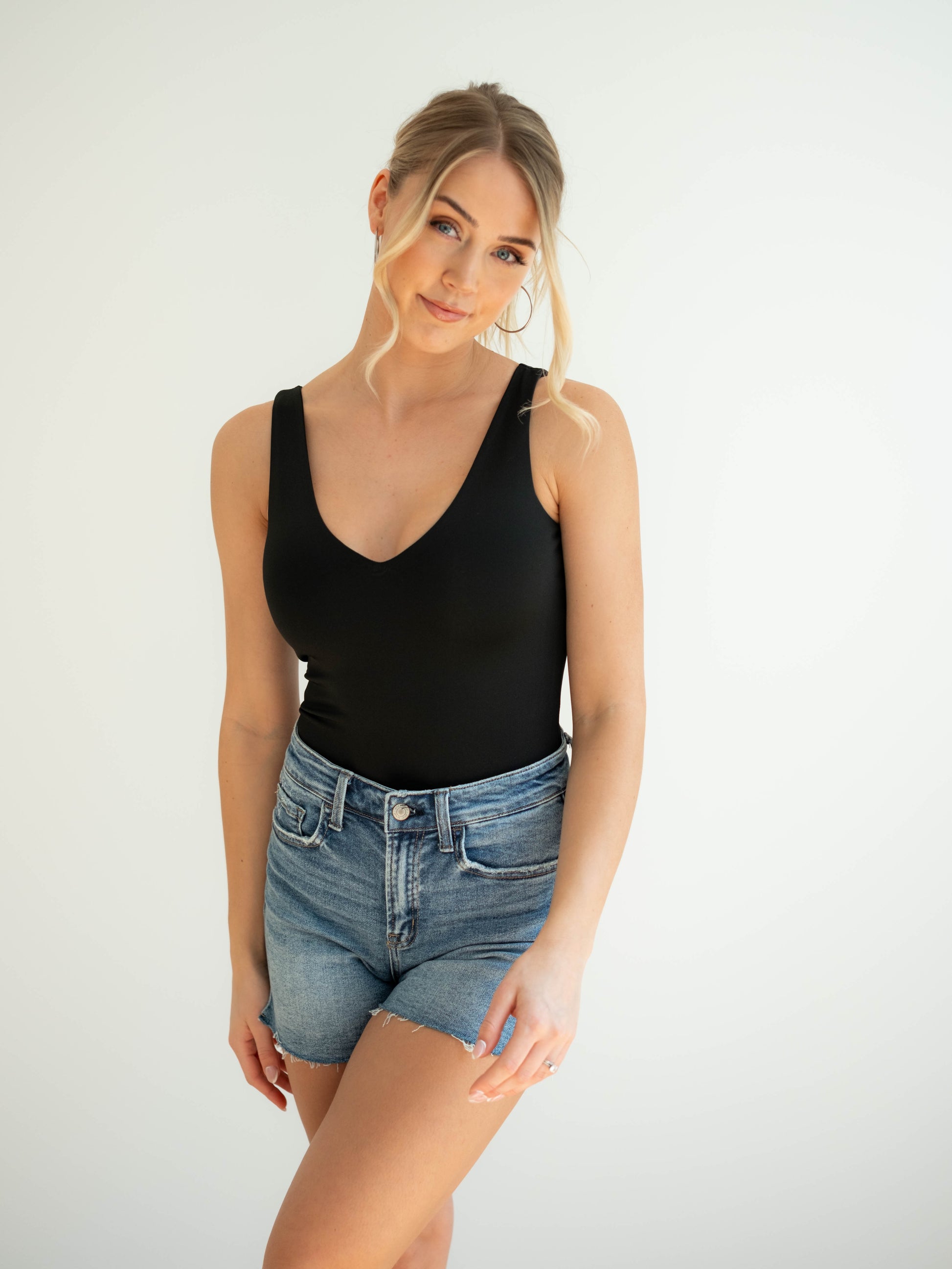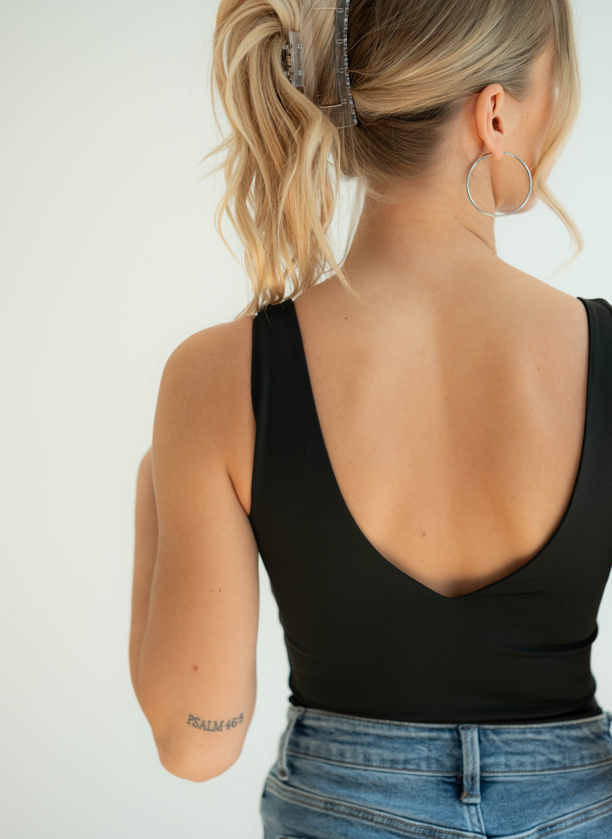 This bodysuit offers a flattering, supportive fit with a double layer finish that hugs your curves. The double plunging neckline adds a touch of sultry style, while the thong-cut bottom and snap button closures ensure a comfortable fit. Perfect for adding a sleek base to any outfit.
