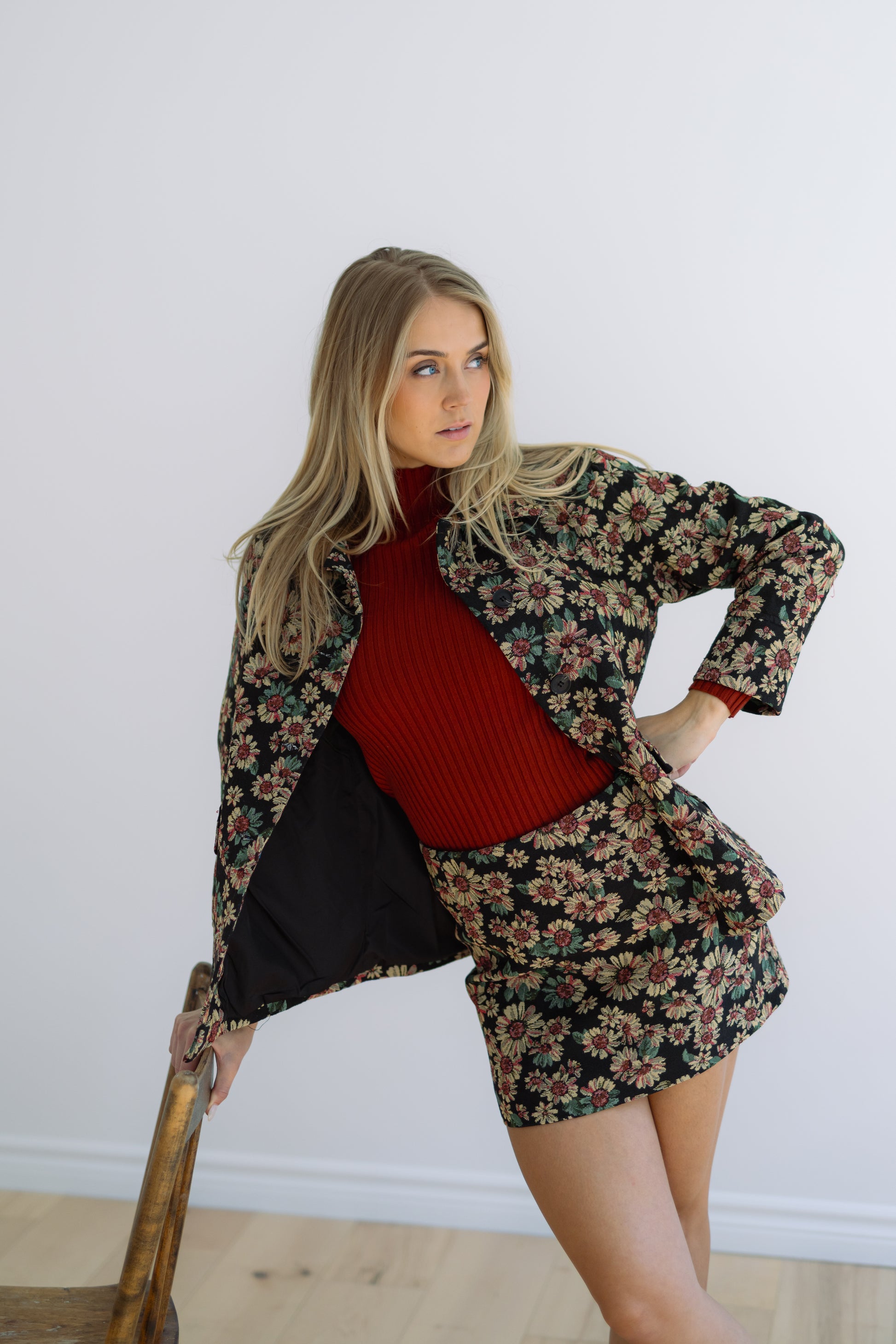 This unique suit is guaranteed to turn heads. Pair the Eleanor Jacket with the Margot Skirt for the perfect "NYC Fashion Week" vibe.