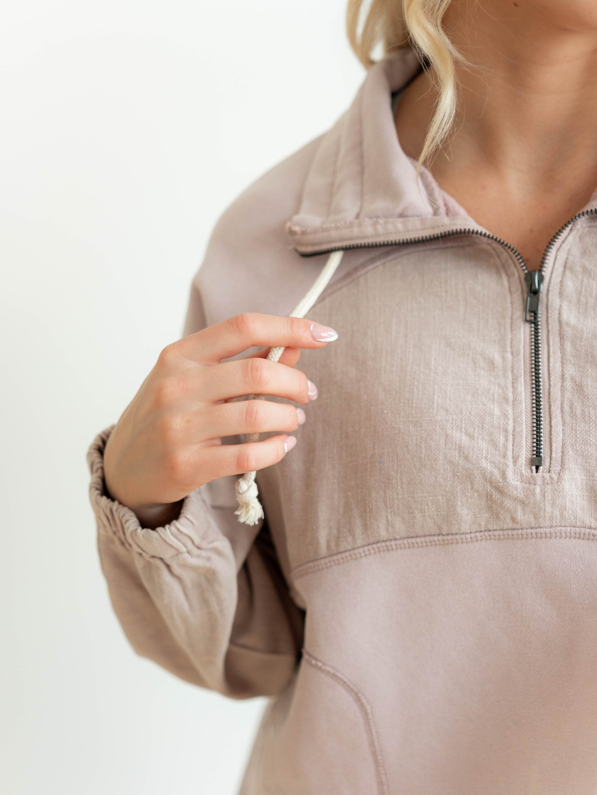 Stay cozy and stylish in our Rose Half Zip Pullover. The acid wash effect and french terry fabric give it a unique look, while the high collar adds extra warmth. Perfect for a casual yet trendy vibe.