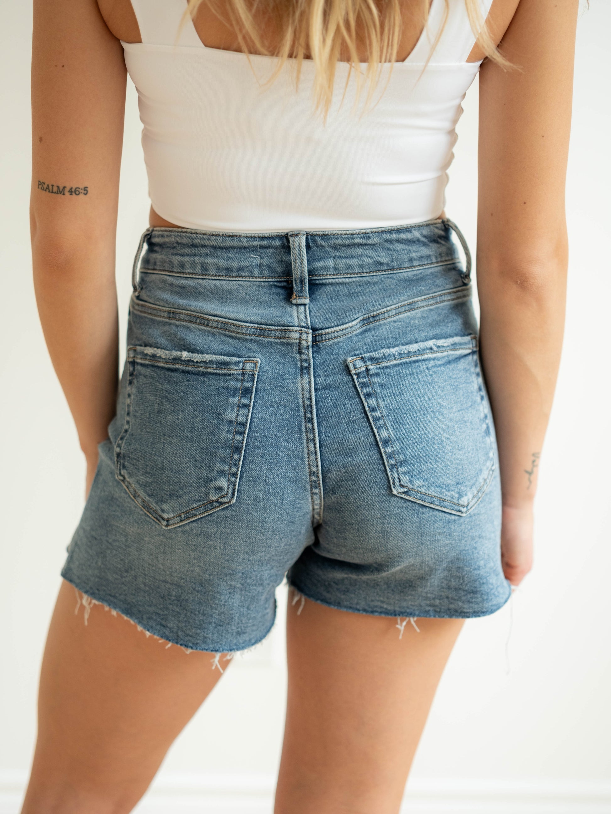 Get ready for summer with our Rebecca High Rise A-Line Shorts! With a stylish side slit and a unique raw hem, these shorts are both trendy and practical. Made with stretchy material, they provide maximum comfort for all your summer adventures.