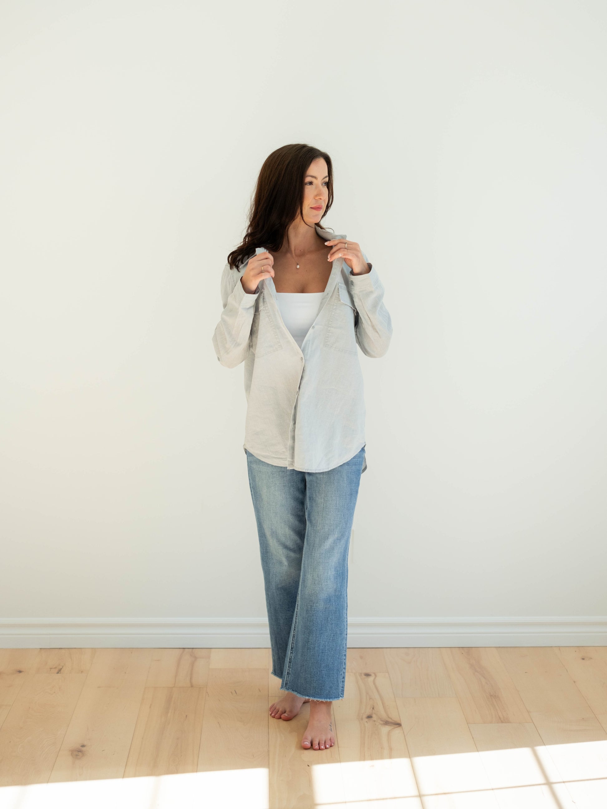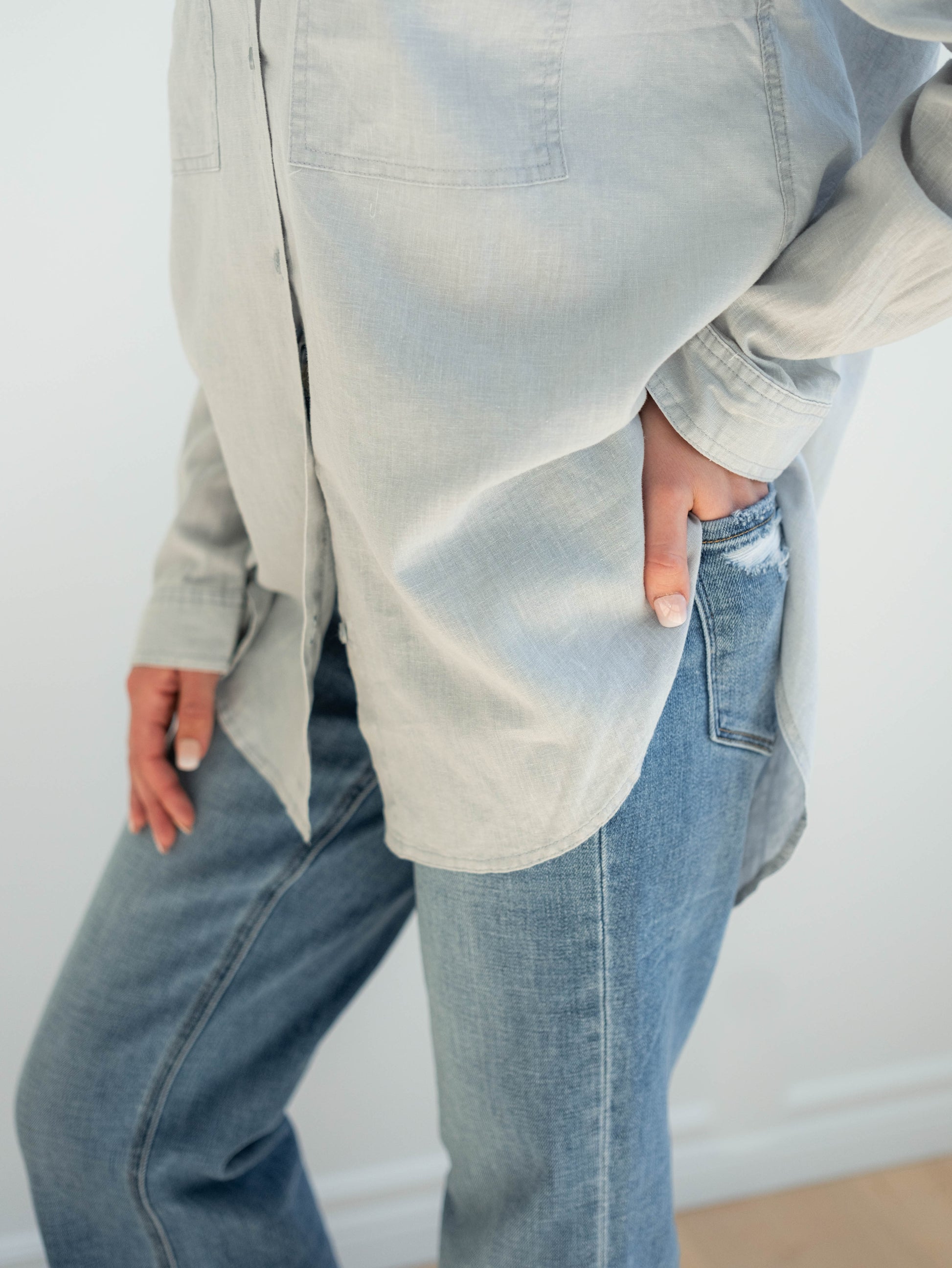 Upgrade your wardrobe with our Not Your Dad's Button-Up Shirt. Made with a comfortable linen blend, this relaxed fit shirt is perfect for any occasion. Its lightweight and breezy design will keep you feeling cool and stylish, while the buttoned cuffs add a touch of sophistication. Say goodbye to stuffy old button ups and hello to a new level of comfort and style.