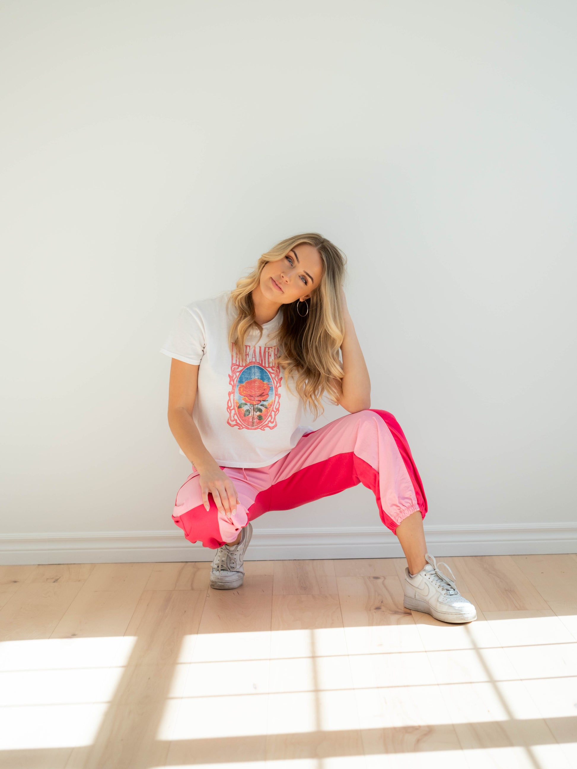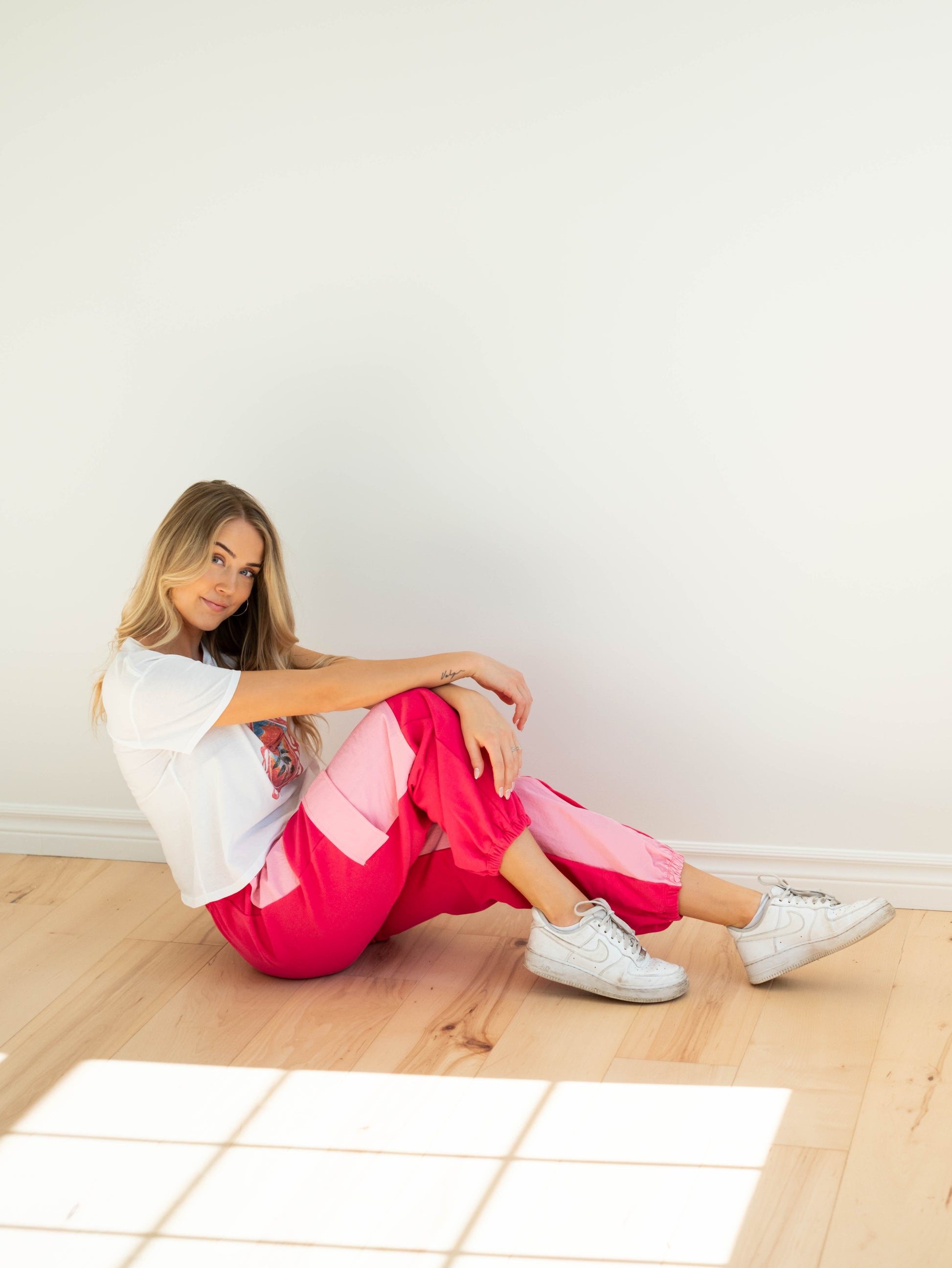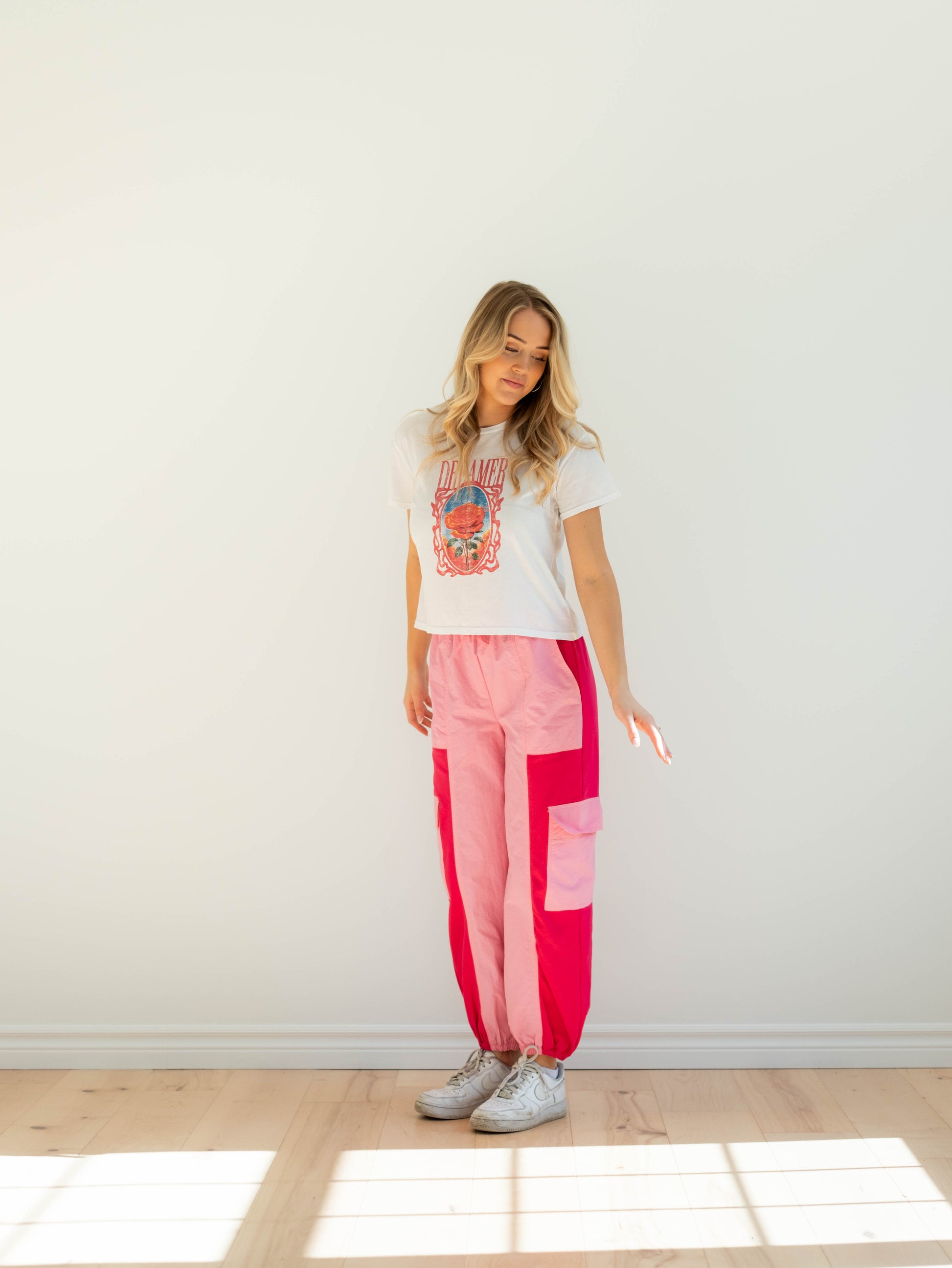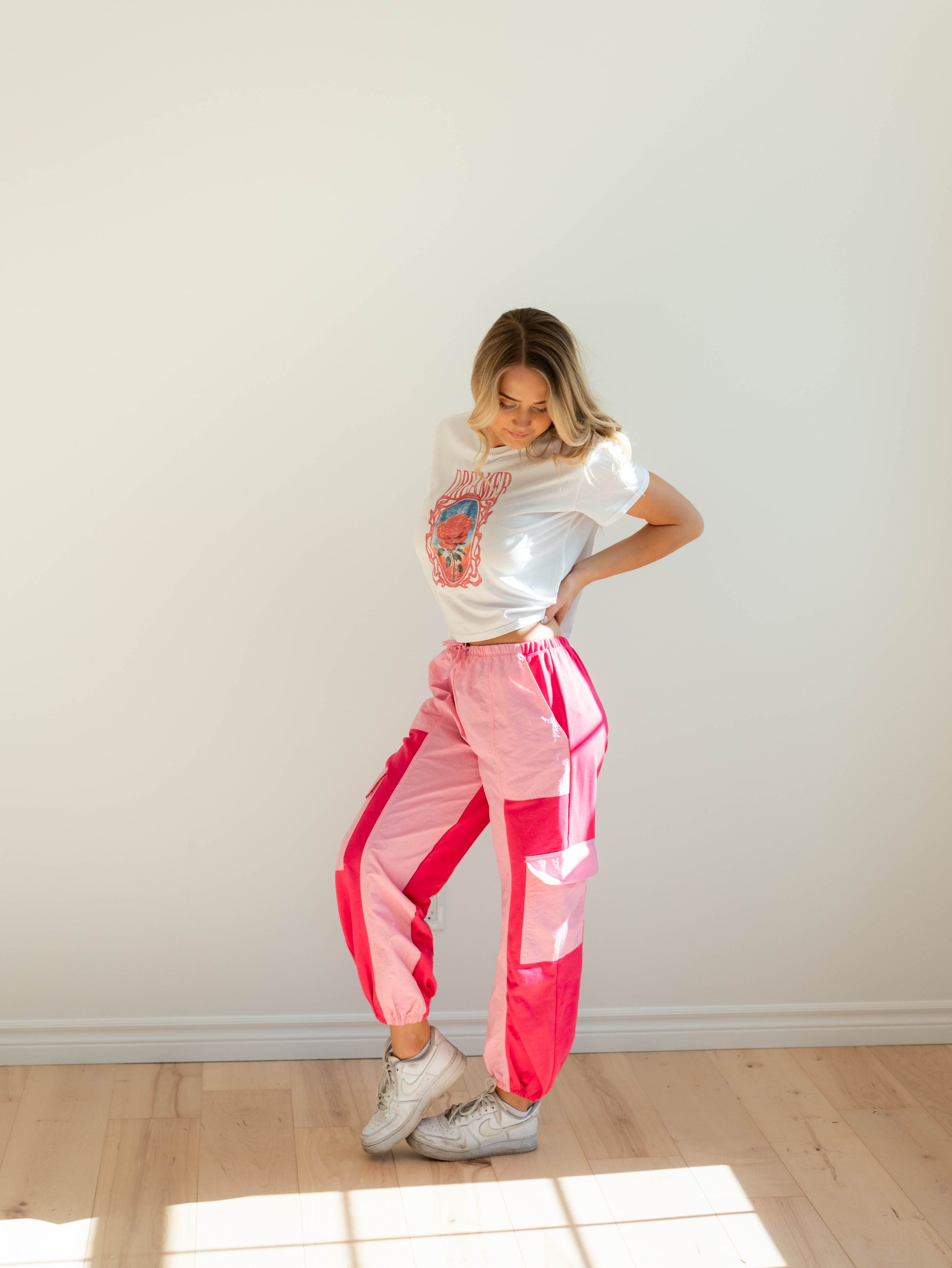 Stand out from the crowd with our Poppy Colour Block Joggers. Made from a cotton blend knit fabric, these cargo joggers are both trendy and comfortable. Featuring a drawstring waistband and pockets, the eye-catching colour block patchwork adds a one-of-a-kind touch. Say goodbye to boring joggers and hello to style.