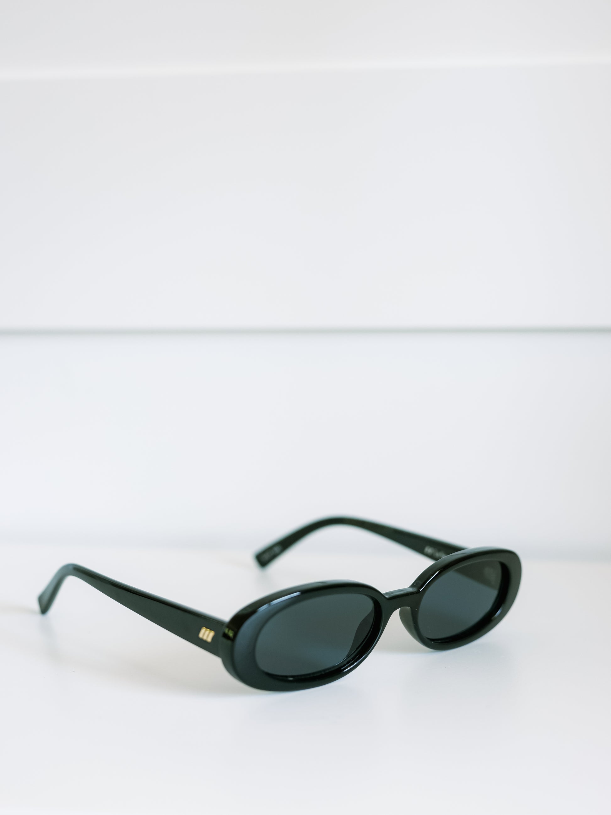 Exuding '90s confidence, our iconic OUTTA LOVE silhouette offers a minimal nineties look. This petite, slimline oval silhouette features a modern flat profile and signature Le Specs gold metal hardware, and is just the right size to complement your face without hiding your best features.