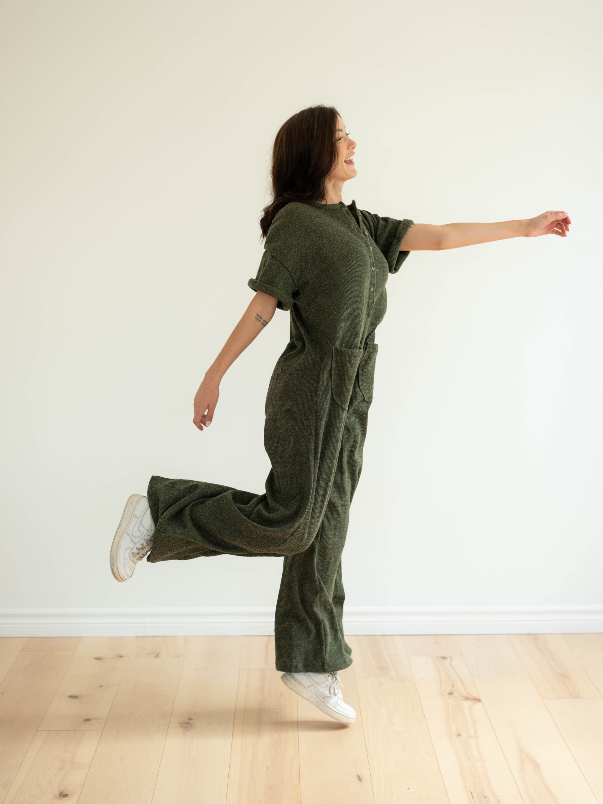 Stay comfortable and stylish with our Hannah Oversized Romper! Made with stretchy fabric, it's perfect for running errands, lounging at home or grabbing lunch with your girlfriends. This versatile piece is a must-have for any wardrobe. (Bonus: its oversized fit means you can enjoy that extra piece of pizza at lunch without feeling constricted.)