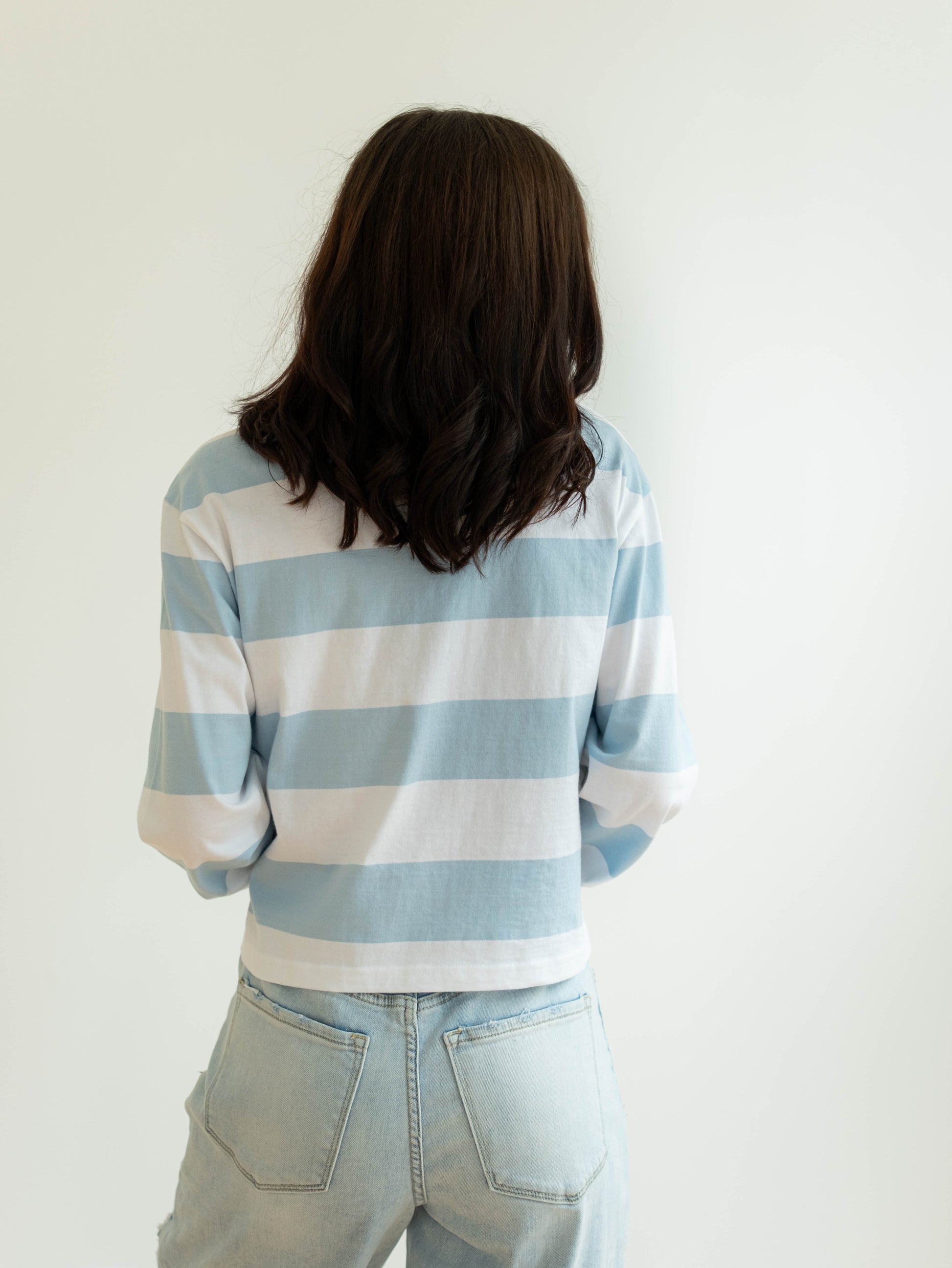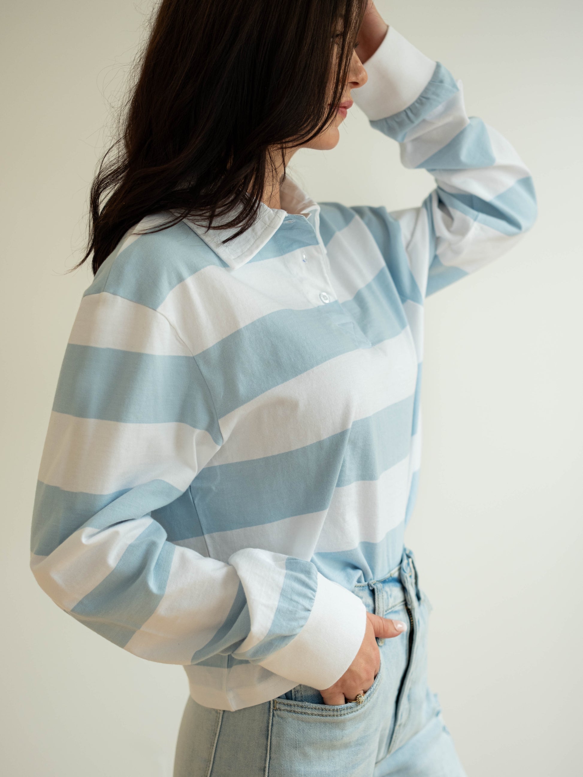 Unleash your sporty side with our Cropped Rugby Shirt! Stand out in bold stripes and a ribbed collar, while enjoying the comfort of long sleeves and a slightly oversized fit. Perfect for a day on the field or a casual day out. Go big or go home!
